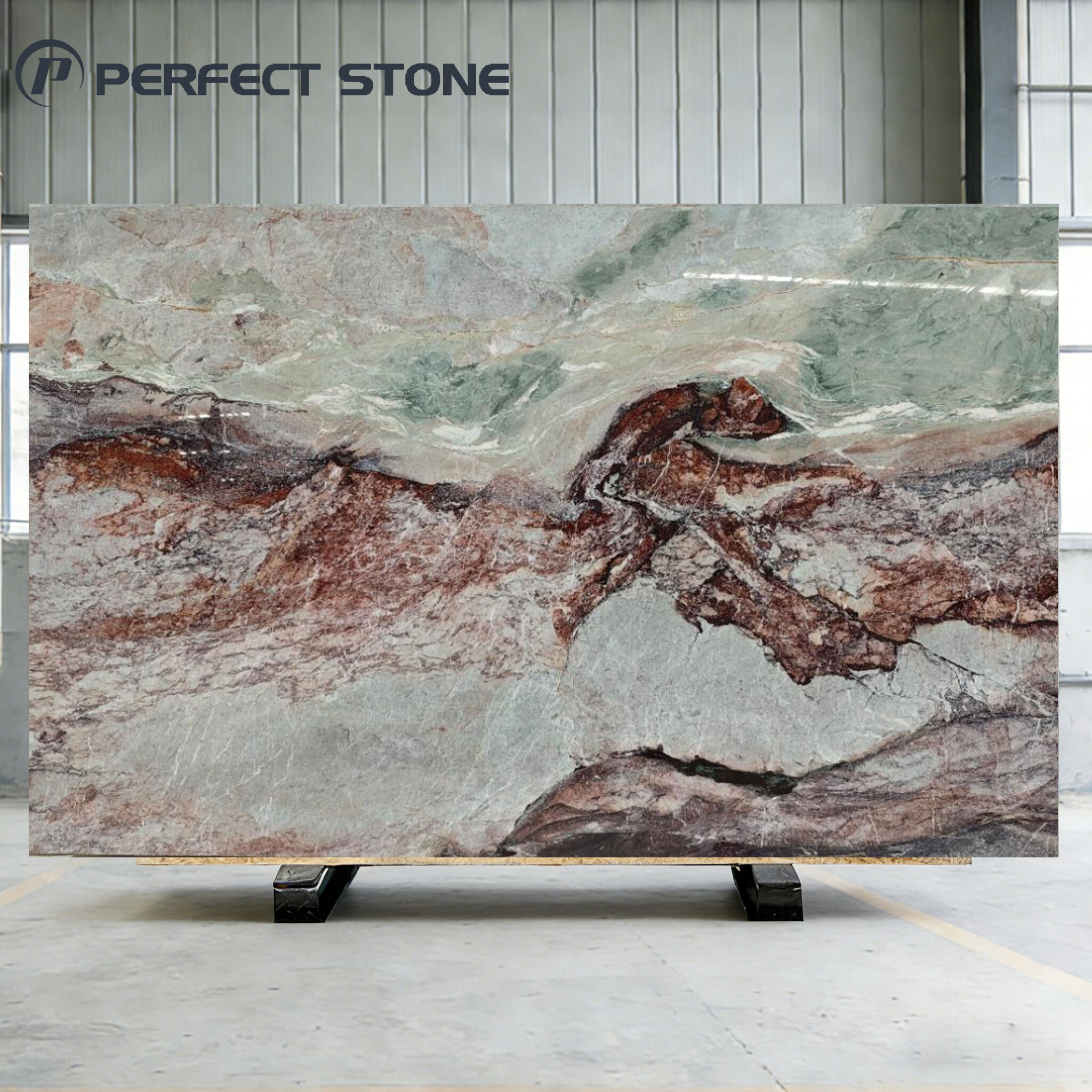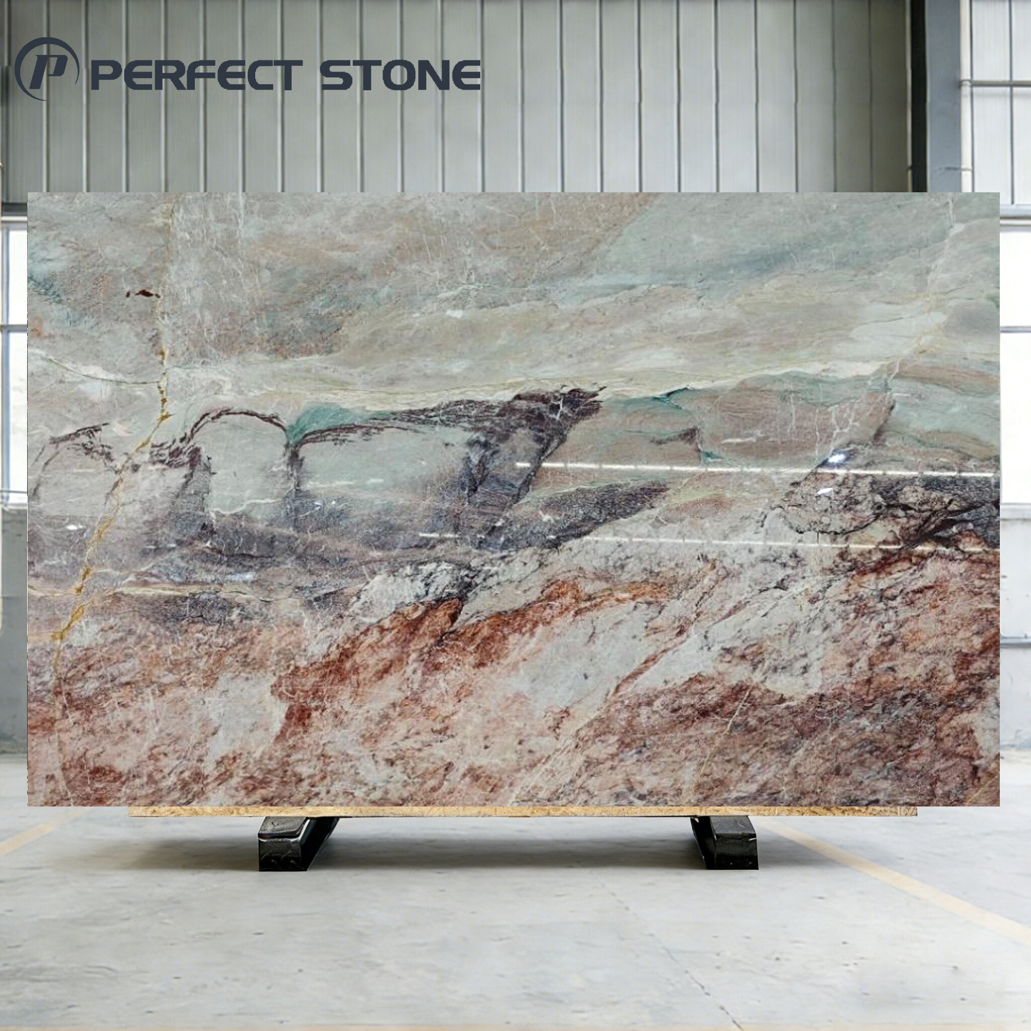 لوحة راقية من حجر الكوارتزيت الوردي المخصص لجميع الفصول الأربعة، وتتميَّز بنمط مناظر طبيعيّة فريد يتضمَّن ألوانًا ناعمة من الوردي والأخضر والترابي. وقد صُمِّم هذا الحجر ليتفوَّق في الصلادة العالية، ومقاومة البقع، والمتانة الفائقة، مما يجعله أفضل أداءً من الرخام القياسي، وهو مثالي لتغليف الجدران، وأسطح المطابخ، والتشييد الفاخر في الفلل والفنادق والمساحات التجارية. وبفضل التوريد الجملة المباشر من المصنع، والقصّ المخصّص، والشحن الموثوق، يُعَدُّ خيارًا عالي الهامش للموزِّعين العالميين والمصمِّمين.