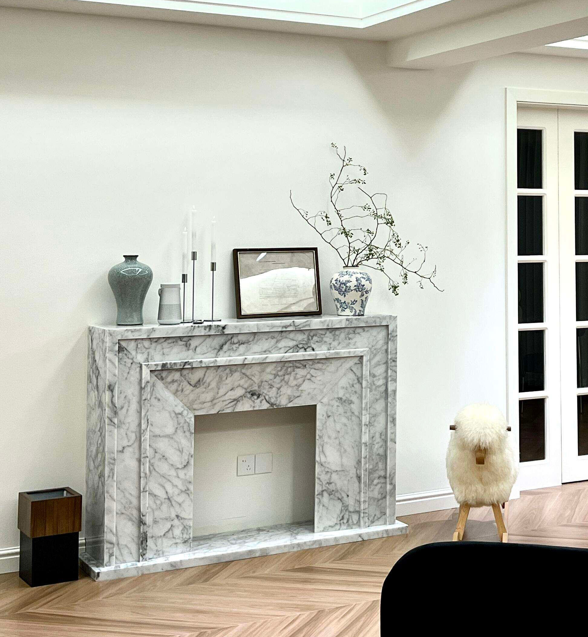 آپارتمانهای مدرن مینیمال و لوکسِ سبک: در سبک مدرن که دیوارهای سفید، کفهای چوبی یا سایههای خاکستری در آن غالب هستند، شومینه سفید کارارا میتواند بهعنوان یک نقطه کانونی بصری گرم عمل کرده و سردی فضا را بشکند.