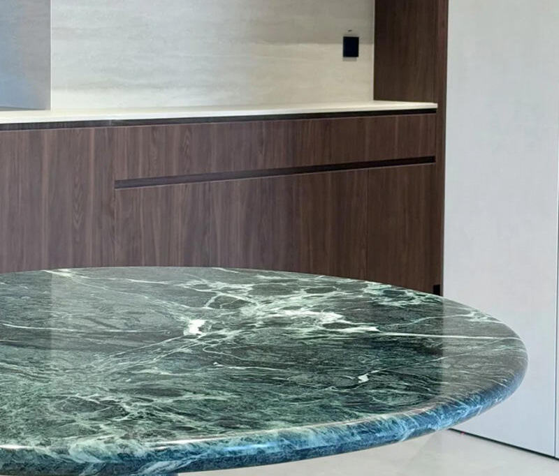 میز غذاخوری گرد از مرمر طبیعی سبز برند PerfectStone برای ساخت ویلا و هتلهای لوکس