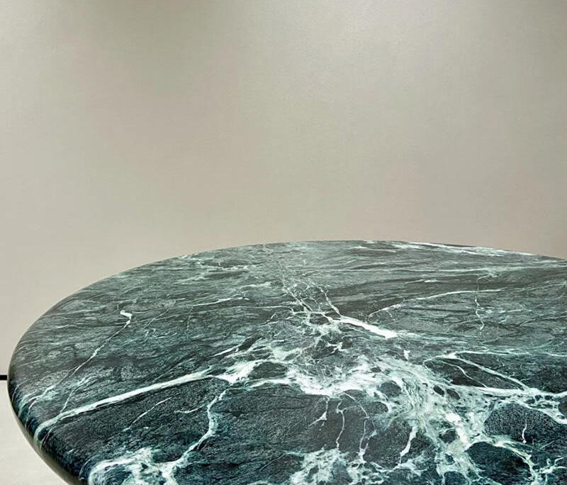 سنگهای نادر و لوکس، که سبکی ظریف و باشکوه منتشر میکنند: مرمر سبز جزو دستهی سنگهای لوکس و پردرجه است. ترکیب رنگ سبز تیره و عمیق با الگوهای سفید، فضایی از ظرافت و جذابیت رترو ایجاد میکند. برخلاف میزهای غذاخوری معمولی از مرمر سفید، این محصول بهراحتی بافتی انحصاری و «غیرقابلدسترس برای دیگران» ایجاد میکند و برای سبکهای رایجی مانند رترو و مینیمال مناسب است.