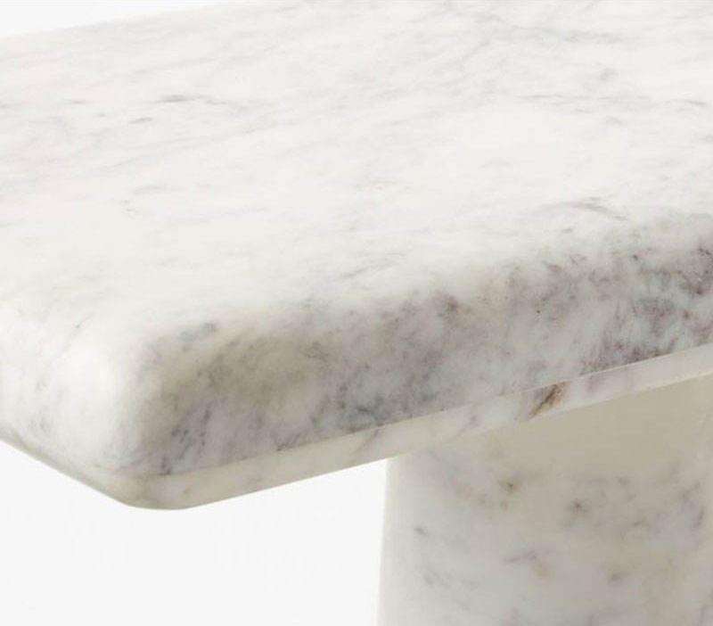 این میز کنسولی دستساز از مرمر طبیعی دارای سطحی مستطیلی و ظریف است که توسط چهار پایهٔ مجسمهگونه و مخروطیشکل نگهداری میشود و دارای رگههای منحصربهفرد سفید و خاکستری است که هر قطعه را یکتا میسازد. این میز بسیار محکم، مقاوم در برابر خراش و آسان در نگهداری است و انتخابی ایدهآل بهعنوان یک قطعهٔ برجسته در پشت مبلها، ورودیها، لابیهای هتل و فضاهای داخلی ویلاهای لوکس میباشد.