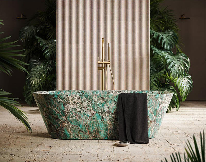 این وان حمام مستقل با دقت بالا از یک تکه سنگ کوارتزیت سبز آمازون تراشیده شده است و رنگ پایهی طبیعی سبز شگفتانگیزی دارد که با بافتهای معدنی منحصربهفردش، هر محصول را واقعاً بینظیر میسازد. این سنگ با سطحی متراکم و بدون منافذ، دارای مقاومت عالی در برابر سایش، مقاومت در برابر لکهها و خراشها، و همچنین خواص عالی عایقبندی حرارتی است و تجربهی حمامگرفتنی طولانیمدت و راحت را فراهم میکند.
