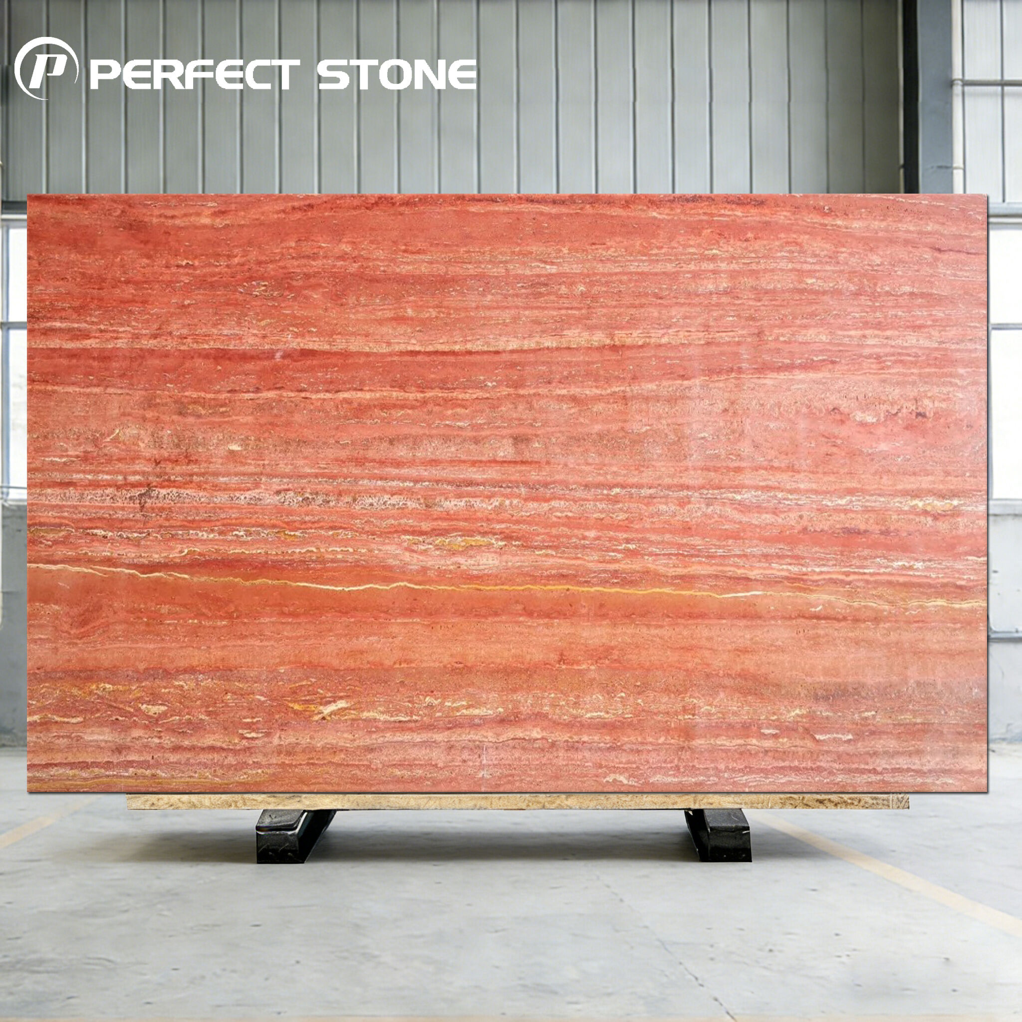 Het toont ook uitstekende veelzijdigheid bij oppervlaktebehandeling. Na polijsten of walsen krijgt de rode travertijn een zachte, matte afwerking met een ouderwetse charme, wat ideaal is voor landelijke of mediterrane ontwerpen. Aan de andere kant biedt de gepolijste afwerking een diepere kleursaturatie en een subtiele glans, geschikt voor formelere en luxueuzere stijlen. Deze flexibiliteit maakt het mogelijk om het materiaal te combineren met diverse binnen- en buitendesignstijlen.