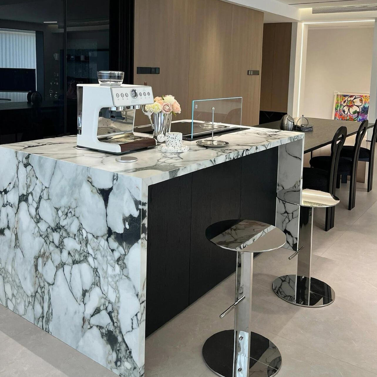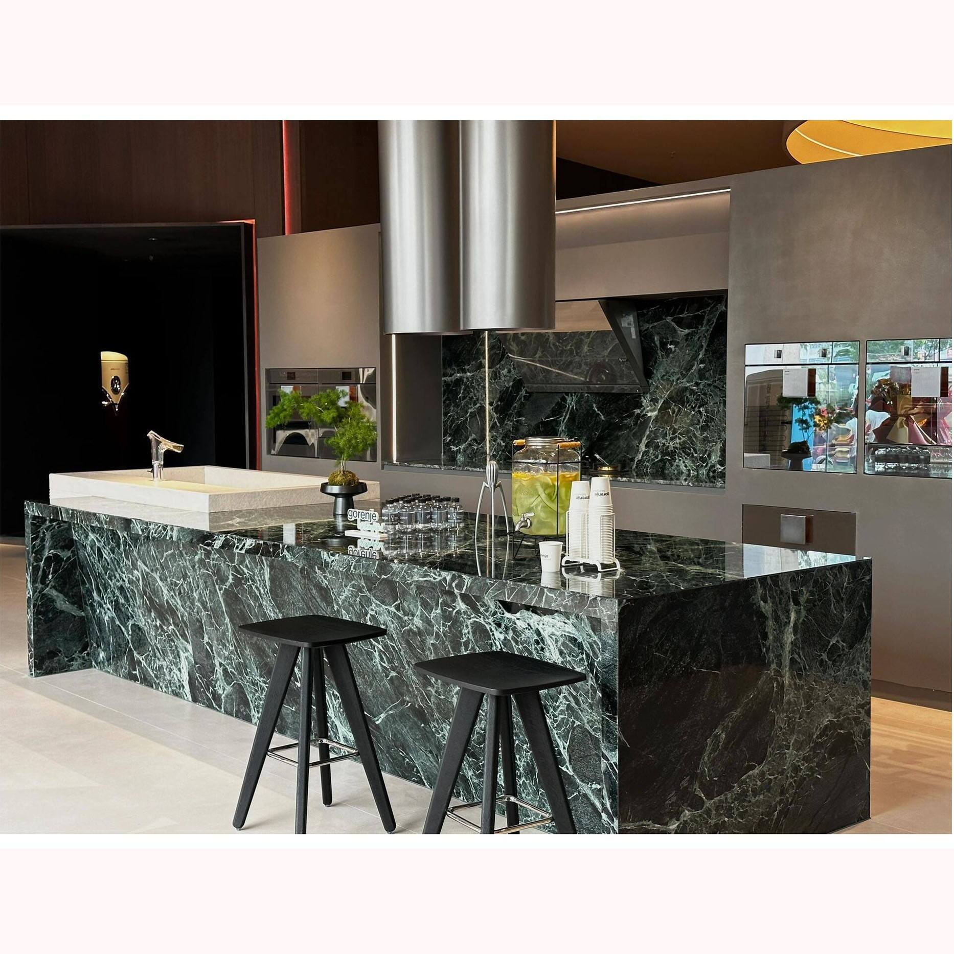 Each piece of marble has its own natural texture, resembling ink-wash landscape paintings or flowing oil paintings, carrying an inimitable artistic charm. It is an unparalleled high-end texture that cannot be matched by ordinary granite slabs or artificial stones. It is also a natural work of art for the kitchen.