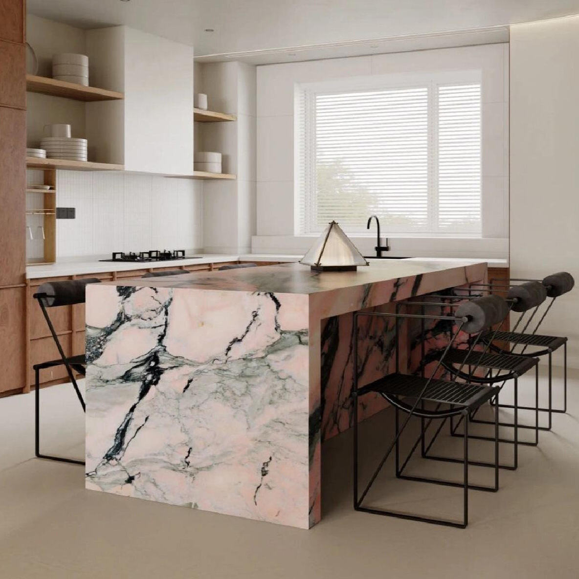 Whether it's the deep green retro elegance, the purple and white French romance, or the pink and green gentle dreaminess, the marble island countertop can instantly become the center of the kitchen, neutralizing the monotony of the cabinets and transforming the kitchen from a "functional area" into an "attractive element".
