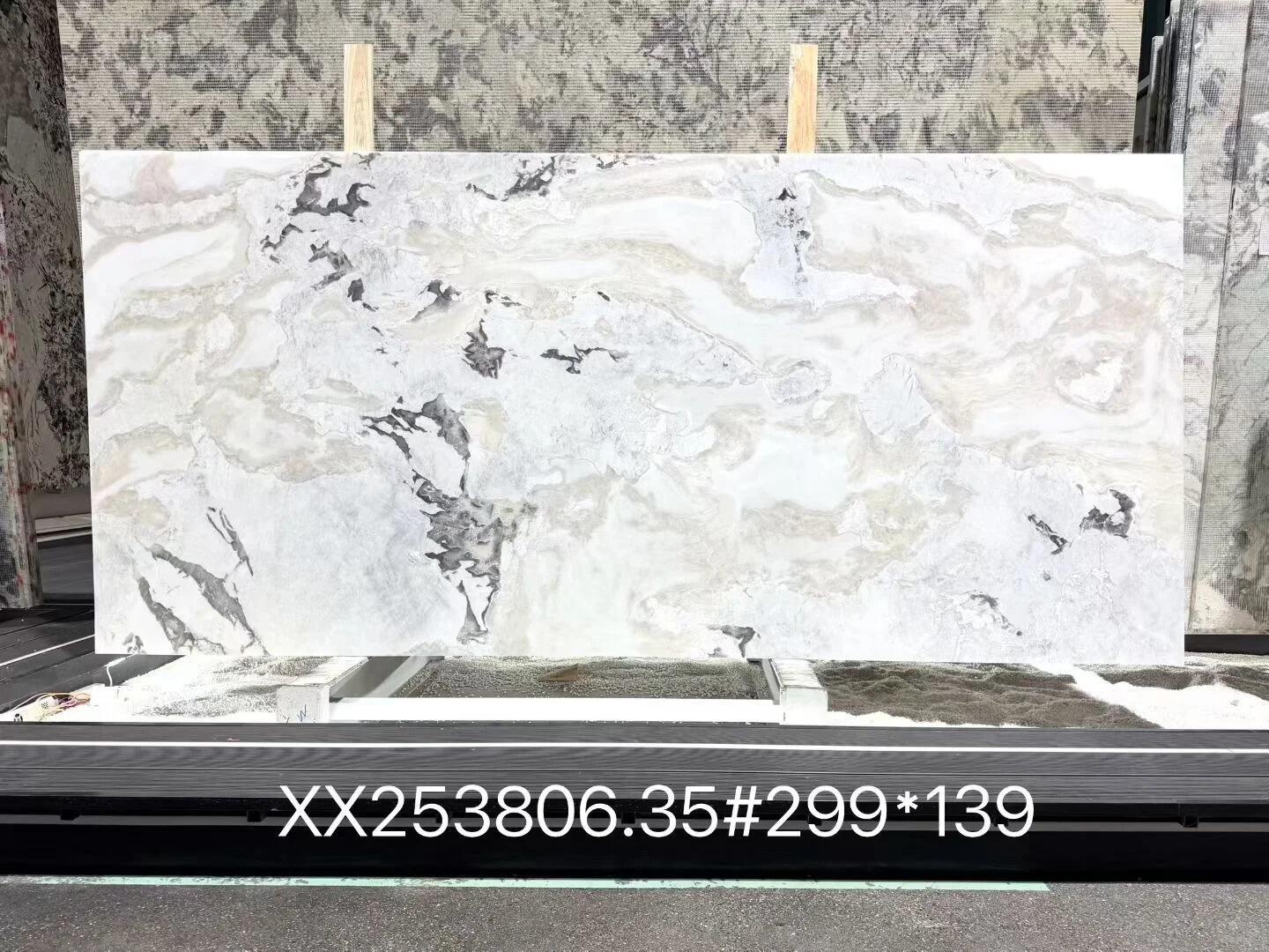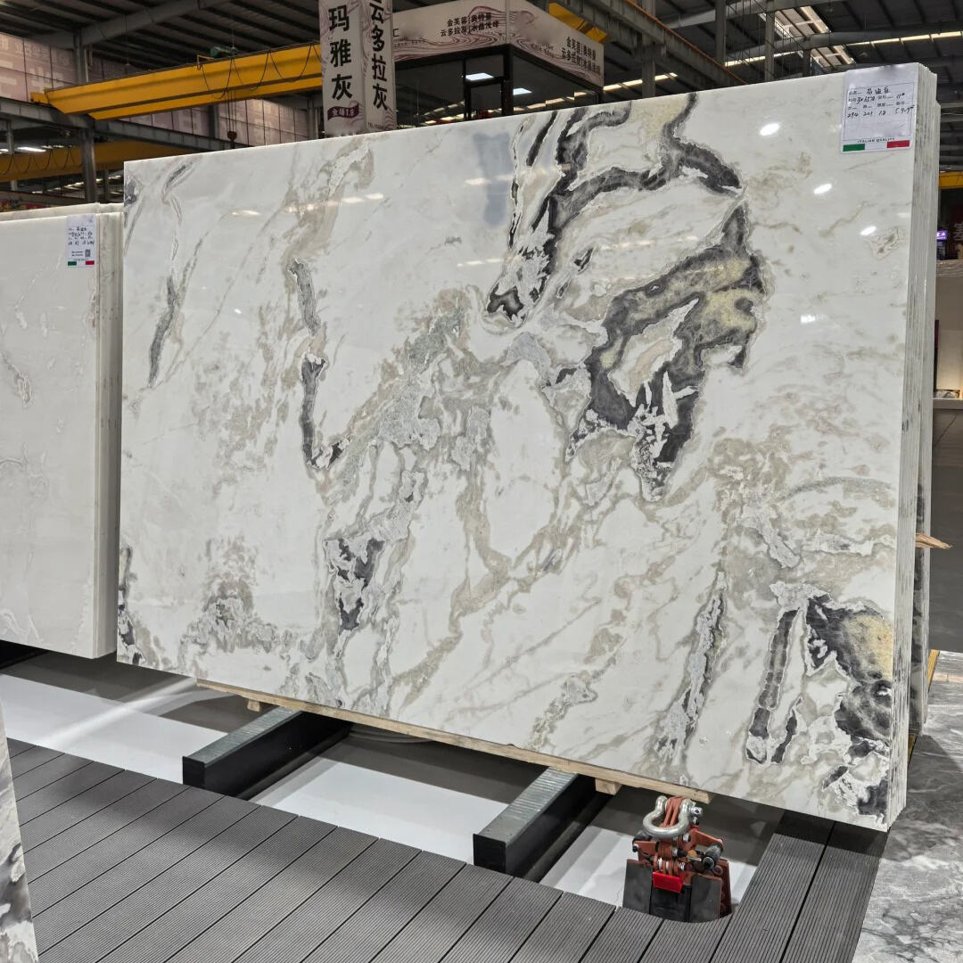 The base color of Oyster white marble is a soft and gentle cream white. The texture is mainly composed of deep and light gray ink lines. The lines are elegant and flowing, like clouds and ink washes, naturally interwoven, carrying an artistic freehand feeling. The crystal surface of the board is fine and transparent, with a polished finish that is glossy and smooth. Under the light, it presents soft fine flashes and a jade-like texture. The overall appearance is clean, high-end, elegant and grand, with a light luxury atmosphere. It is a highly recognizable white series leader among stone materials. The high-quality Oyster white material has a certain degree of light transmissibility. Under the light, it can present a warm and semi-transparent jade-like effect, which is extremely luxurious.