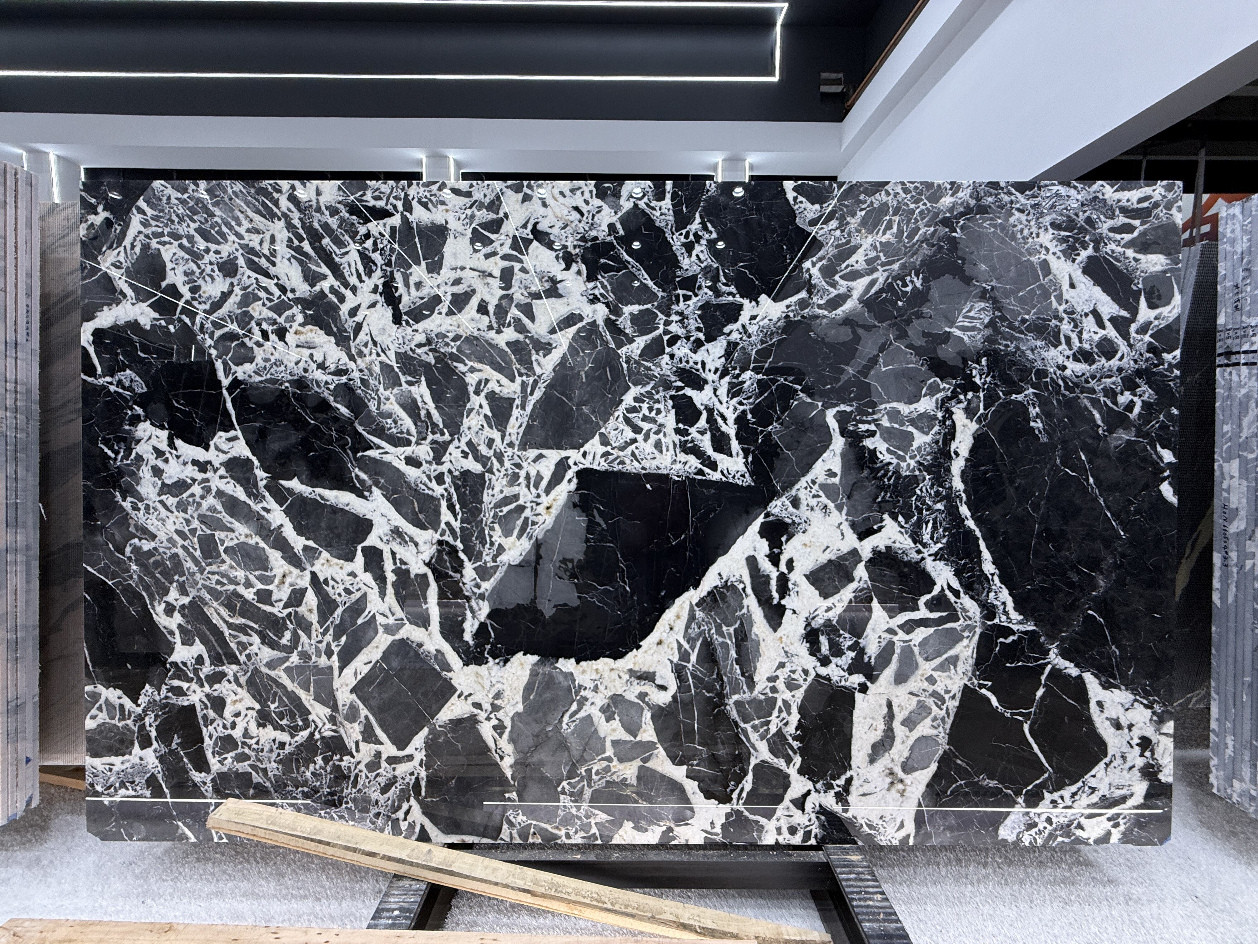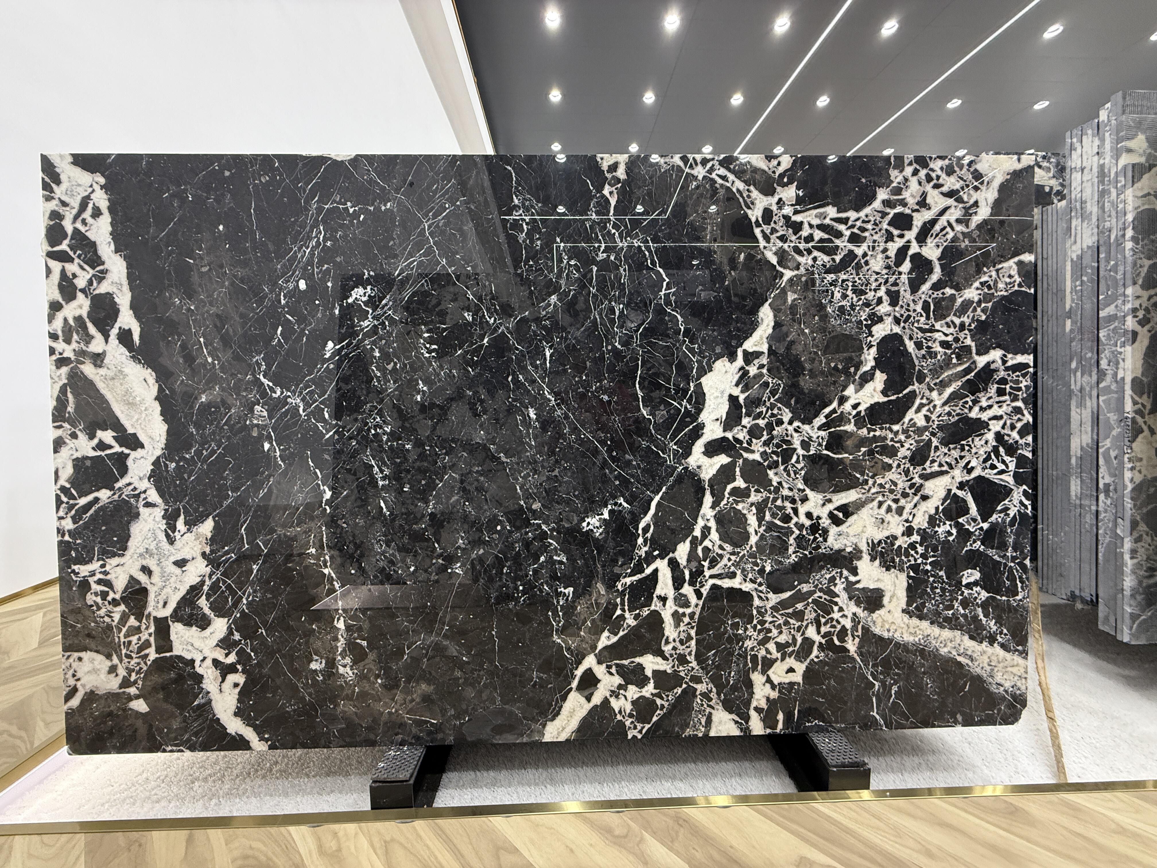 Calacatta Black marble features a deep and luxurious black base, adorned with striking white and grey patterns, creating unique bold and elegant designs on each slab. This high-quality natural stone perfectly combines timeless elegance with modern drama, making it ideal for use in upscale countertops, walls, floors, and vanity tops. Its excellent polishing effect, durability, and ease of maintenance enable it to enhance luxurious residential and commercial spaces, including hotels and villas. Its rich textures and high contrast add depth and uniqueness to the interior, embodying refined aesthetics and superior craftsmanship, and are suitable for global high-end design projects.