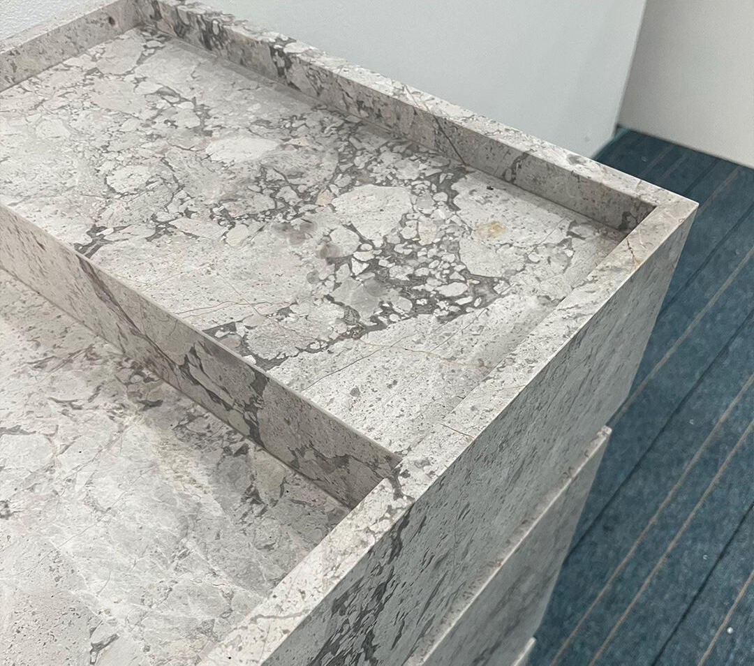 100% Natural Marble Luxury: Crafted from select-grade natural marble, each cabinet boasts a unique, fragmented brecciated pattern with striking grey and charcoal veining. No two pieces are identical, ensuring a one-of-a-kind luxury statement.