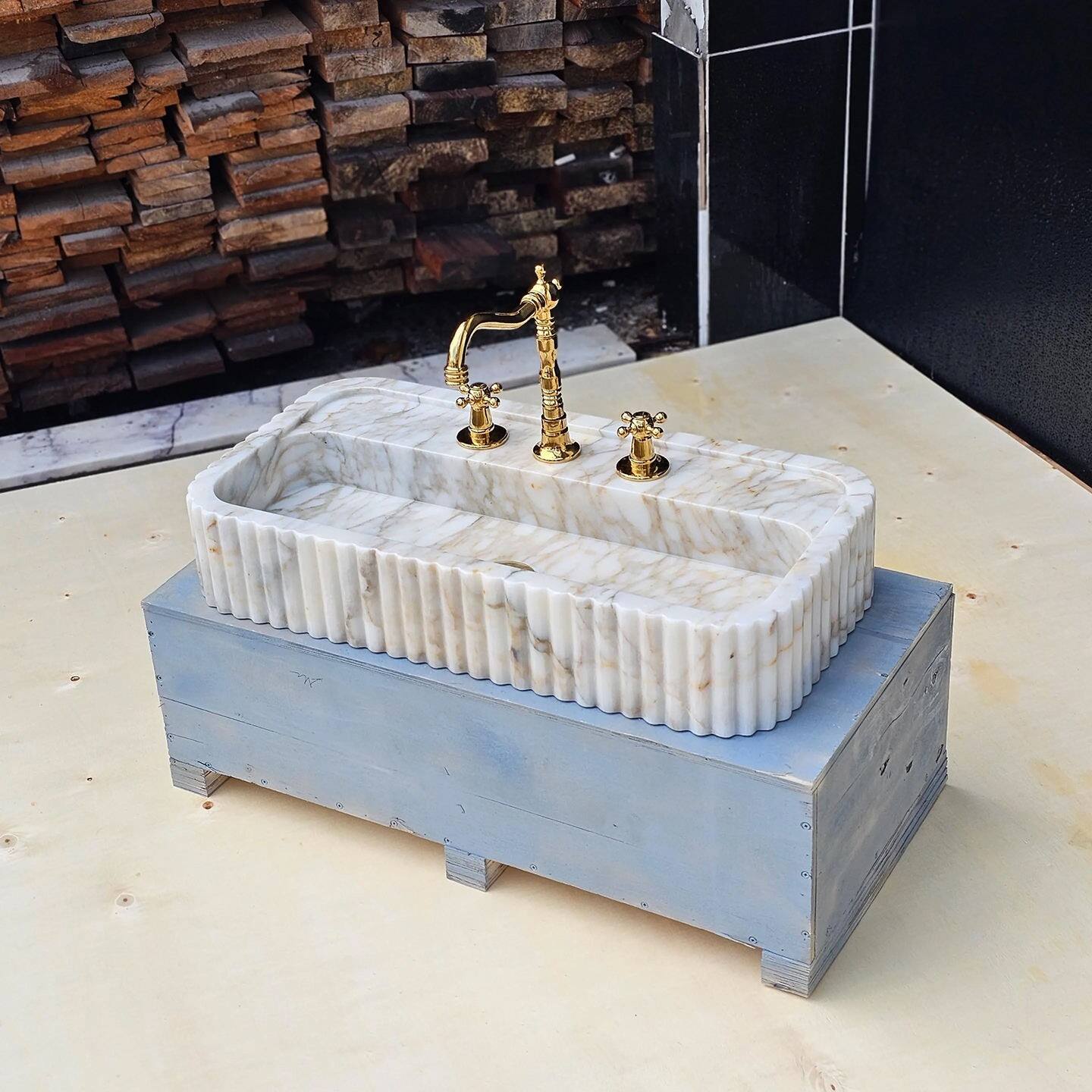This fluted wall-mounted marble sink is a perfect fit for high-end villa master bathrooms, boutique hotel suites, luxury boutique spas, and premium resort washrooms.