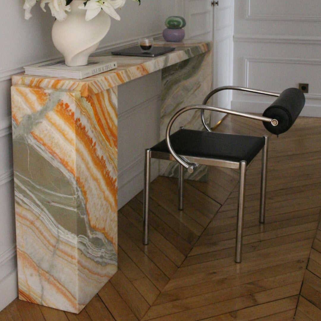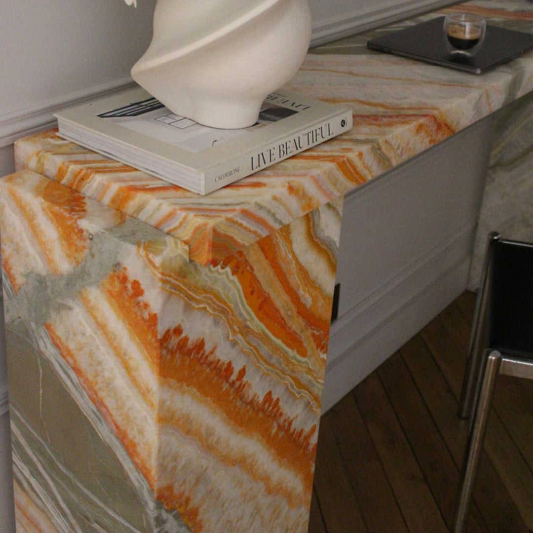 Onyx Console Table – Crafted from exquisite natural onyx, displaying translucent layers, rich veining and unique depth of color that radiate luxury and warmth. Solid stone structure ensures stability, durability and long service life. Polished surface is smooth, stain-resistant and easy to maintain. Its elegant modern design highlights the stone’s natural translucency. Perfect for entryways, hallways, living rooms and upscale spaces, blending artistic beauty with practical display to create a glamorous, high-end interior atmosphere.