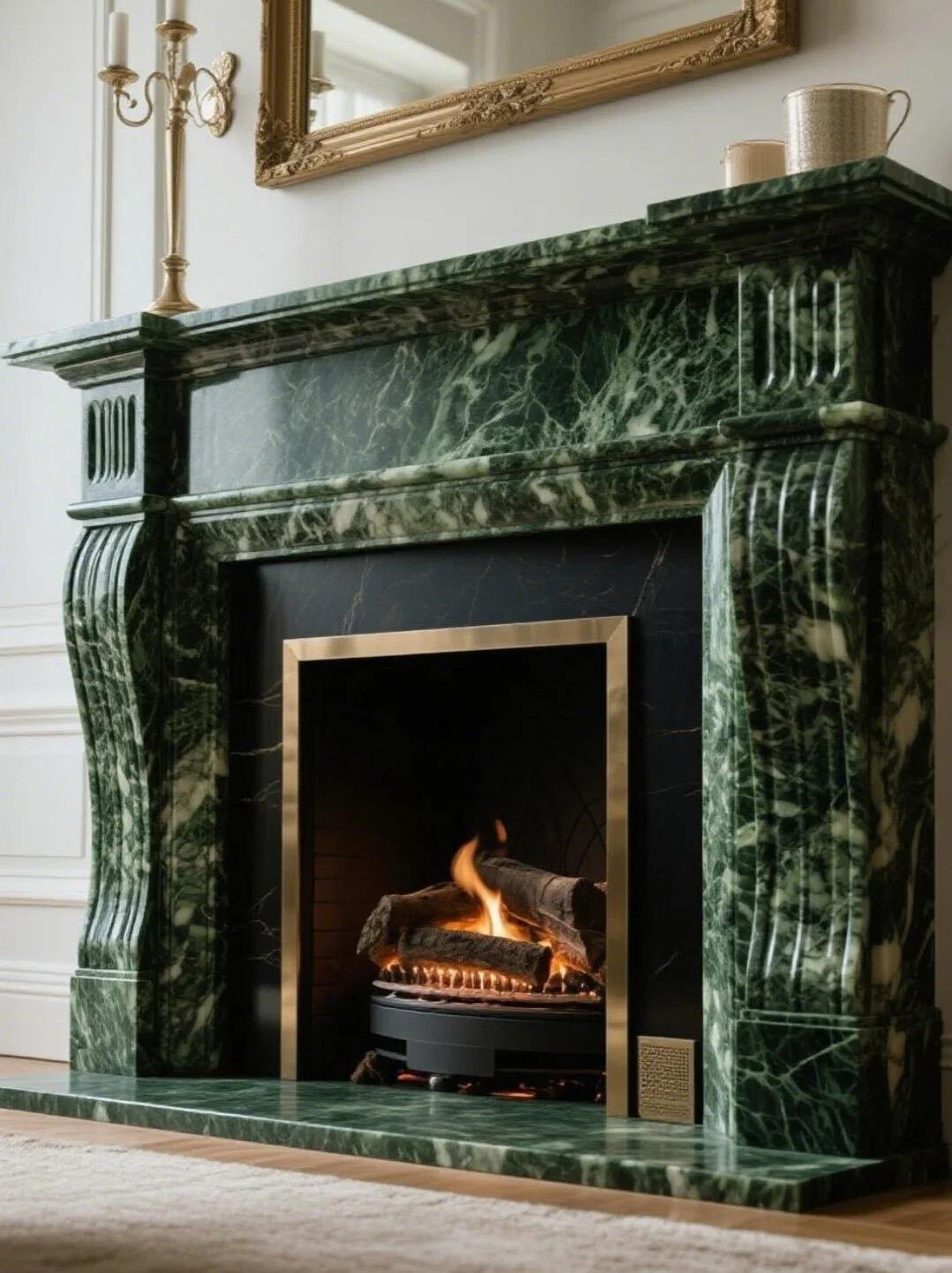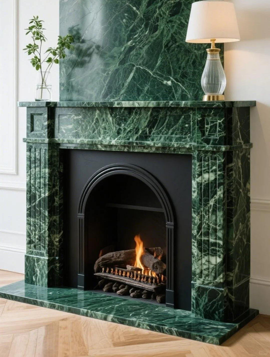 Green marble is a classic model among natural luxury stones. Its rich green color combined with flowing white patterns exudes an elegant and sophisticated vibe, distinct from ordinary stones. Each fireplace is an irreplicable natural art piece with high collectible value.