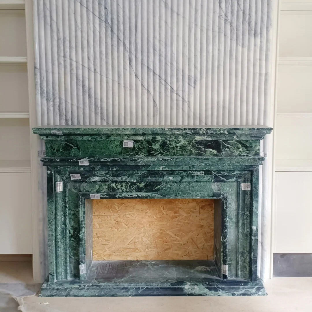 The green marble fireplace has become a highly sought-after "finishing touch" in recent years in high-end residential and commercial spaces. Unlike the purity of white marble or the simplicity of travertine, the green marble fireplace exudes a serene, luxurious, and vibrant aristocratic charm - its green hue is like jade frozen on the stone surface, with textures resembling mountain ranges or like clouds and flowers drifting, and when combined with the flickering fire, it can create a sophisticated atmosphere of "treasuring nature at home".