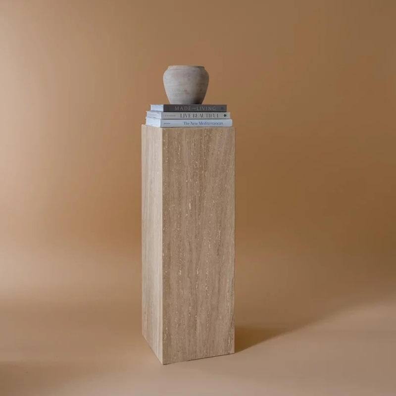 Designed with a sleek, minimalist cubic form, it serves as a versatile accent piece that works beautifully as a bedroom nightstand, living room side table, or decorative pedestal for sculptures and floral arrangements. The travertine’s natural variations add depth and warmth to modern, minimalist, and organic-inspired interiors, making it ideal for luxury hotel suites, custom villa spaces, and high-end residential projects.