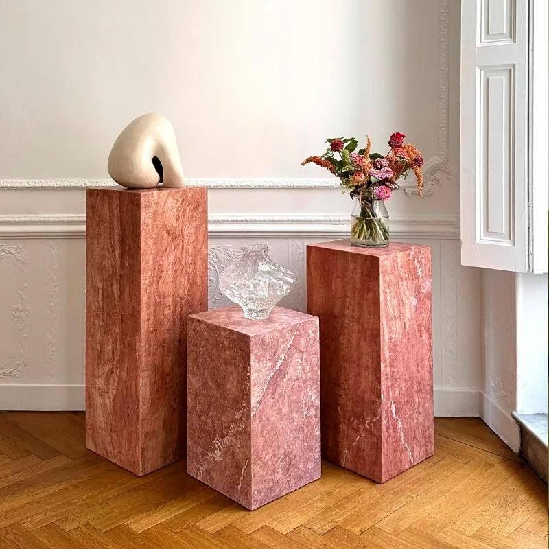 It works beautifully as a functional nightstand in bedrooms, an elegant accent side table in living rooms or reading nooks, or a decorative pedestal for displaying art, sculptures, floral arrangements, or curated decor. Perfect for luxury hotel suites, boutique lobbies, high-end villa interiors, and custom residential projects, it complements modern, minimalist, organic, and Japandi-style spaces alike.