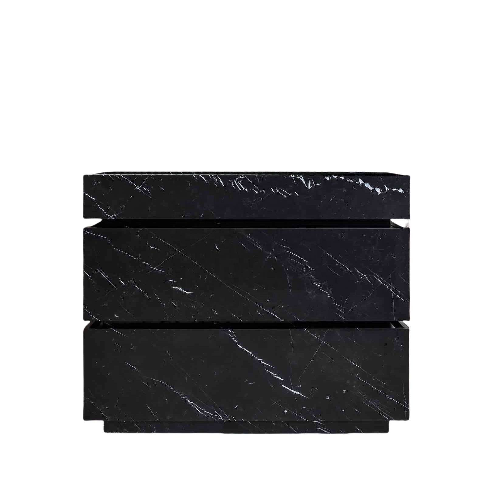 This Nero Marquina marble vanity is purpose-built for high-end bathroom environments, making it ideal for luxury villa master baths, boutique hotel guest suites, upscale residential powder rooms, premium condominium wash areas, and commercial hospitality spaces such as spas, resorts, and high-end retail restrooms. Designed to complement contemporary and minimalist interior styles, it serves as both a functional wash station with integrated storage and a striking design centerpiece, perfectly suited for high-end construction and renovation projects seeking a sophisticated, durable natural stone solution.