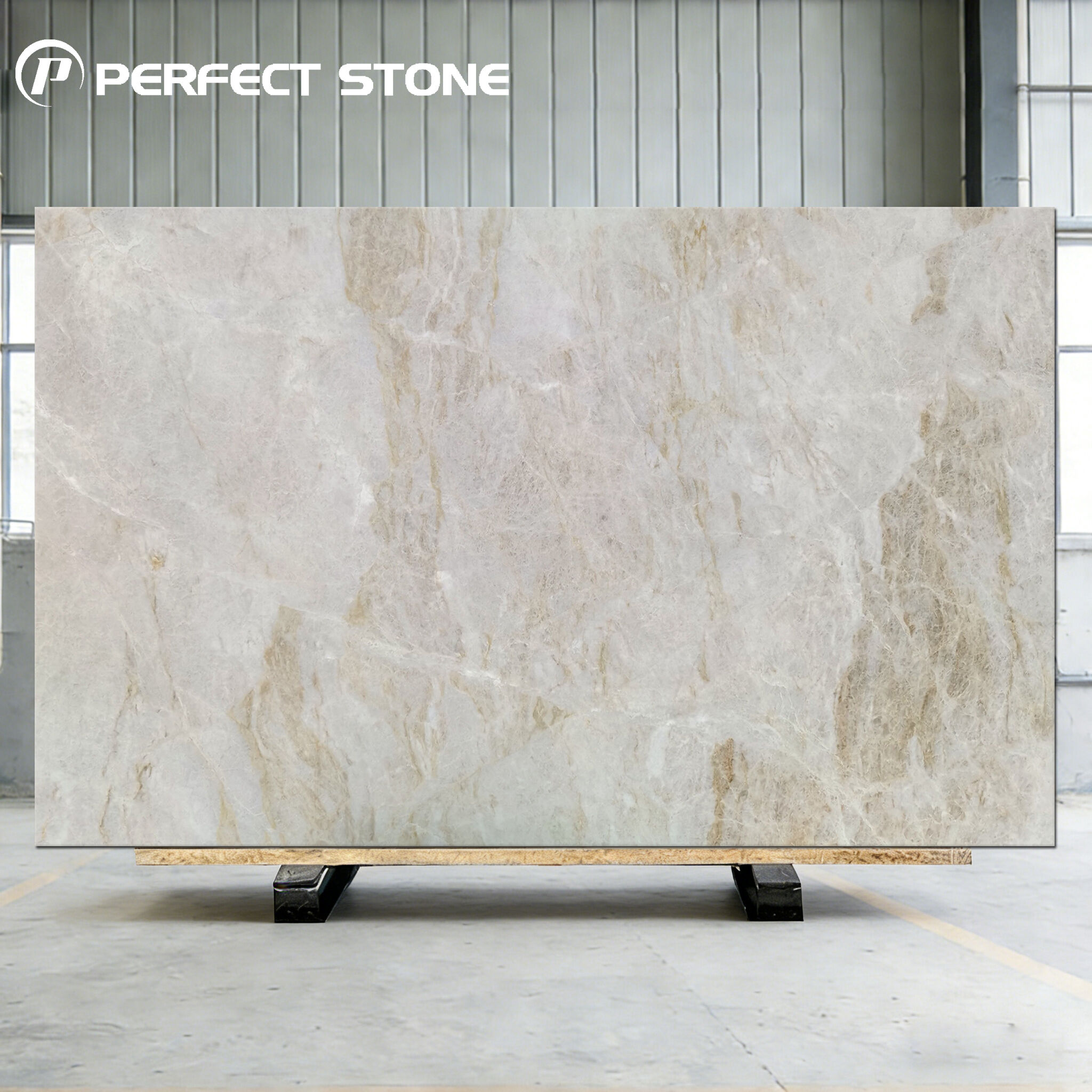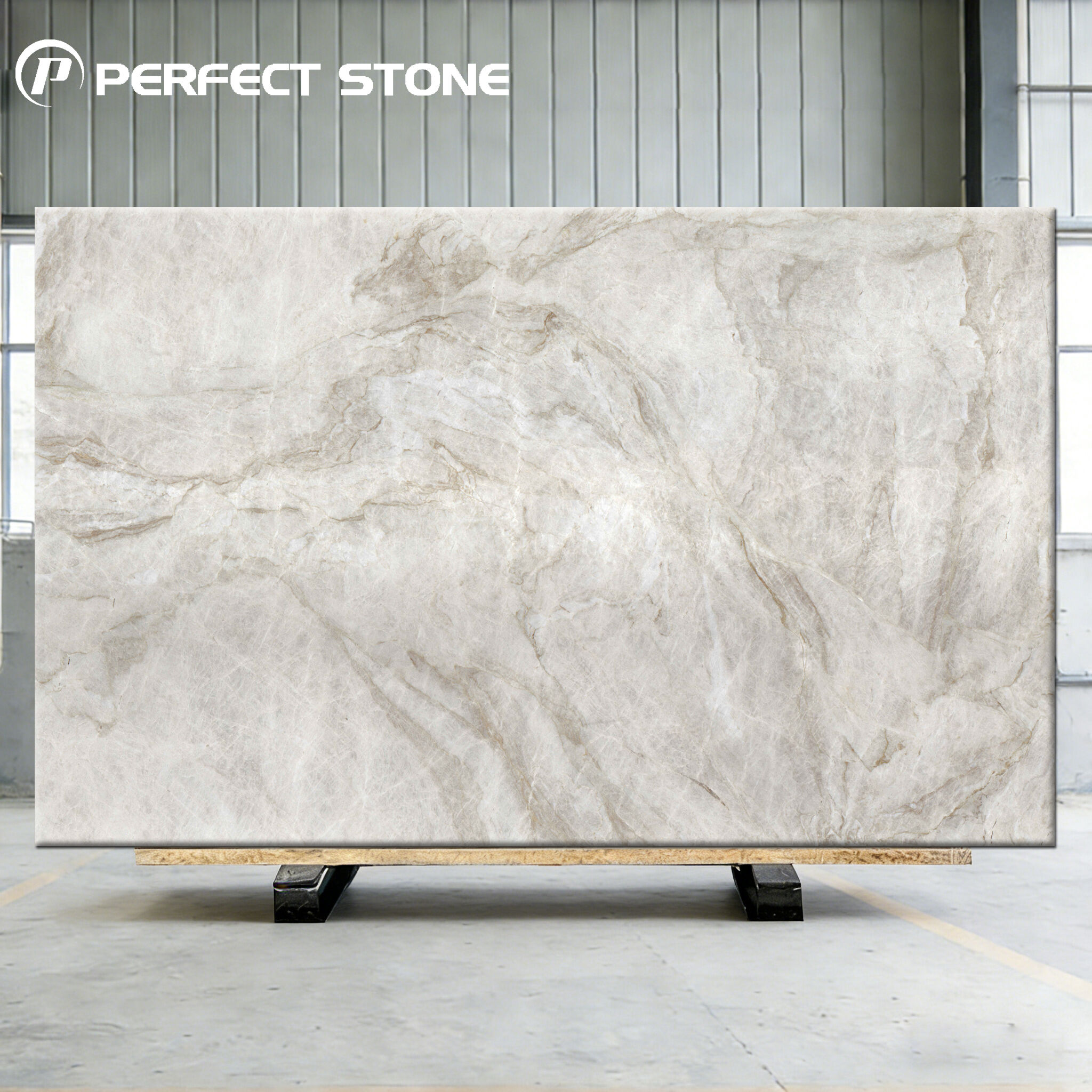 Kwarcyt Taj Mahal to wybitny kamień naturalny, ceniony za wyrafinowany wygląd przypominający miękkiego białego marmolu. Jego jasna, kremowa powierzchnia pokryta jest eleganckimi, falującymi żyłami w odcieniach delikatnego szarości i ciepłego złota, tworząc wrażenie ruchu i głębi. Poza pięknem charakteryzuje się niezwykle dużą trwałością i odpornością, oferując doskonałą odporność na zarysowania, wysoką temperaturę oraz działanie substancji kwasowych, które mogłyby spowodować matowienie. Ten idealny połączenie wieczystej elegancji i solidnej praktyczności czyni go bardzo poszukiwanym materiałem na wyspy kuchenne, umywalki łazienkowe oraz tzw. ściany-akcenty, zapewniając luksusowy i trwały dodatek do każdego domu.